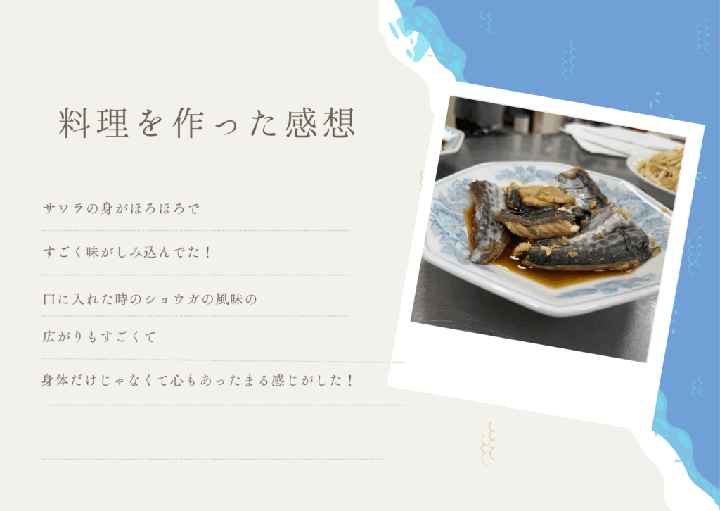 旬のお魚料理 2月! 煮つけキング・サワラ 旬のお魚料理 2025.10.16 魚 + 春 = 鰆春の魚と書いてサワラと読む!まさに春にぴったりの一品です!ご賞味あれ! 材料! (2人分) サワラ … 3切れしょうが … ひとかけ 酒 … 60ccみりん … 60cc砂糖 … 大さじ1しょうゆ … 30cc 作り方!! 手順1サワラの切り身をサッと水洗いして水気をふき取る! がっつりじゃないよ!サッと水洗いだよ! 手順2鍋に水150ccと調味料をすべて入れる!サワラを並べ置いて、落し蓋をし中火で煮立てる! 煮立てるっていうことは沸騰した中でぐつぐつさせるってことだよ! 手順3落し蓋を外して、煮汁を「アロゼ」のようにサワラにすくいかける!アロゼはフランス料理の調理法!鍋の中の諸々をすくいかけるような工程のことをいうよ!詳しいことは自分で調べてね! 手順4サワラを取り出し、残った煮汁を煮詰める! 生姜のいい香りがしてくるよ!おなかすくね! 手順5煮詰まった汁をサワラにかけたら完成! ※大事なこと※食べる前にはみんなで「いただきます」と言おう!作ってくれた人 獲ってくれた人 運んでくれた人 売ってくれた人いろんな人やモノに感謝しながら「いただきます」をしようね!美味しさが2億倍になるよ!