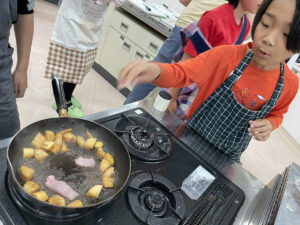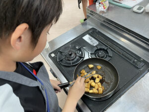❺フライパンに調味料『A』を全て入れ、タケノコも入れ沸騰させる
