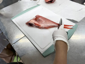 沸騰させてから3分たったら金目鯛の皮を上向きにして並べるように入れる