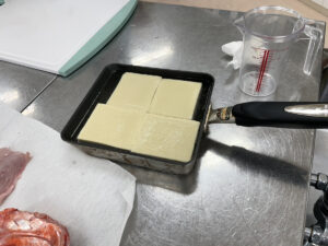 再び沸いたら高野豆腐を入れ、クッキングシートで落し蓋にする